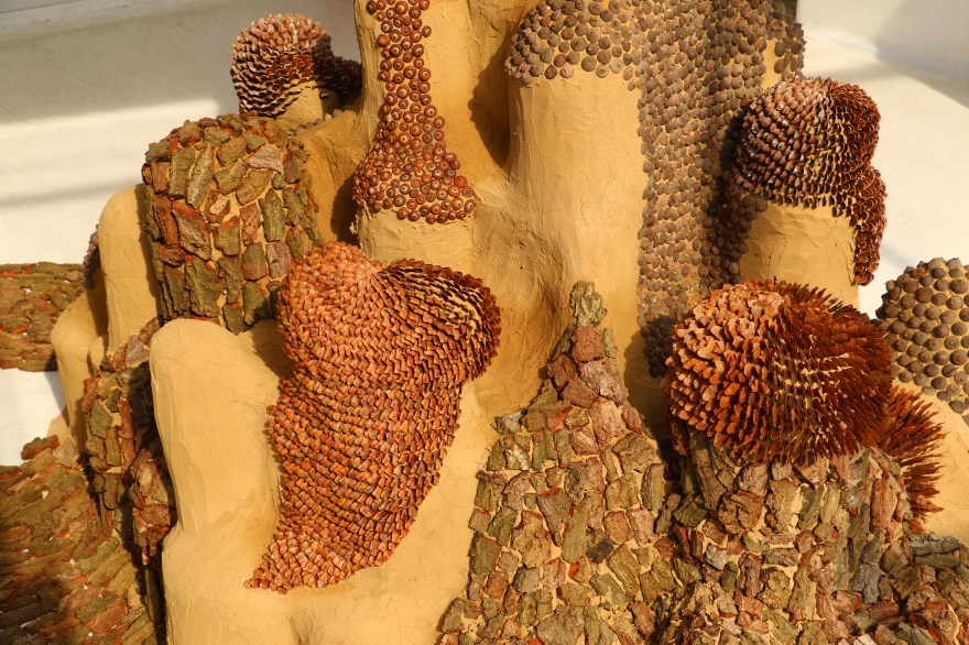 Reused loam and materials from “A Skin on Earth piece I”, straw, oak bark and capsules from the forest, moss, stones, water